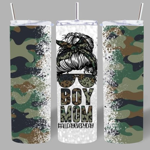 Camo βBoy Mom β All Day Everydayβ 20oz Tumbler πβ¨
